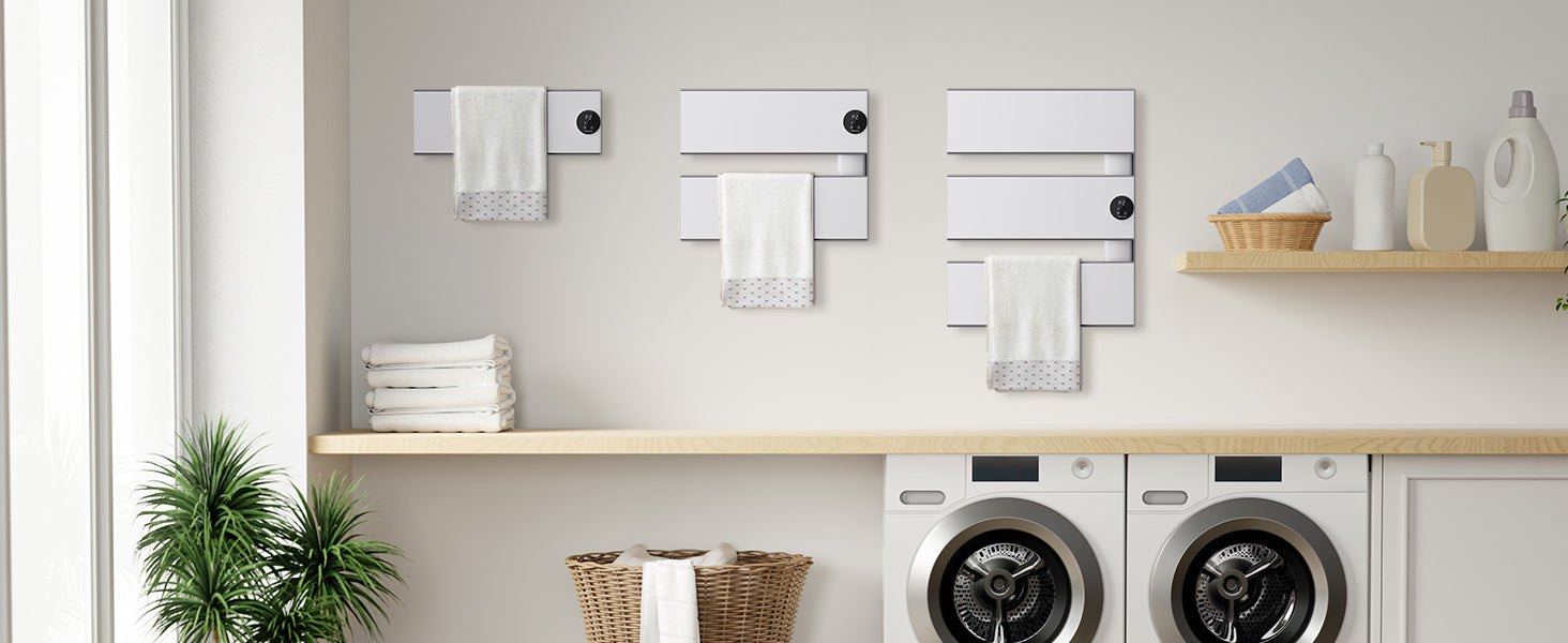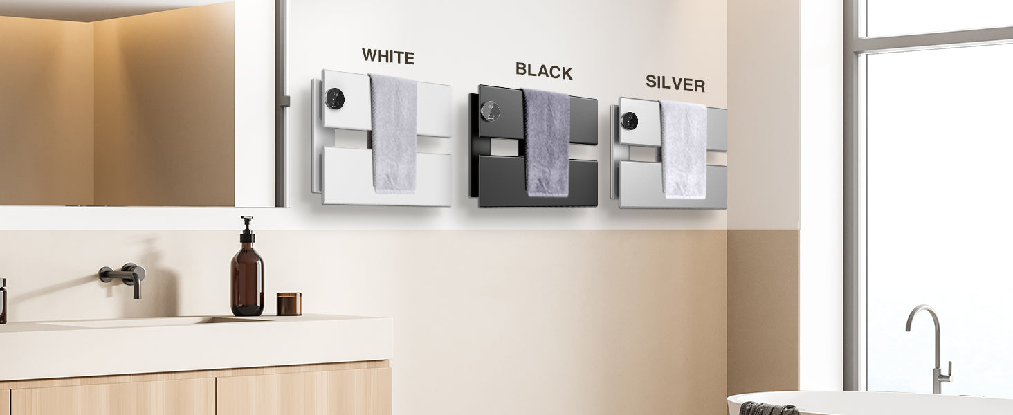 [Larger Heating Panel for Faster Drying] Featuring an expansive heating surface, this bathroom towel warmer quickly dries towels. For example, a 16" x 28" (approx. 40.6 cm x 71.2 cm) towel can be efficiently dried in just about 2 hours, with heat evenly distributed across the panel.