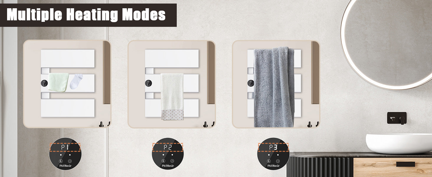 [Premium Aerospace Aluminum Construction]: The P&Dlusir electric towel warmer is crafted from aerospace-grade aluminum, combining refined durability with a stylish design. Waterproof and anti-scald, it's a safe and chic addition to any space.